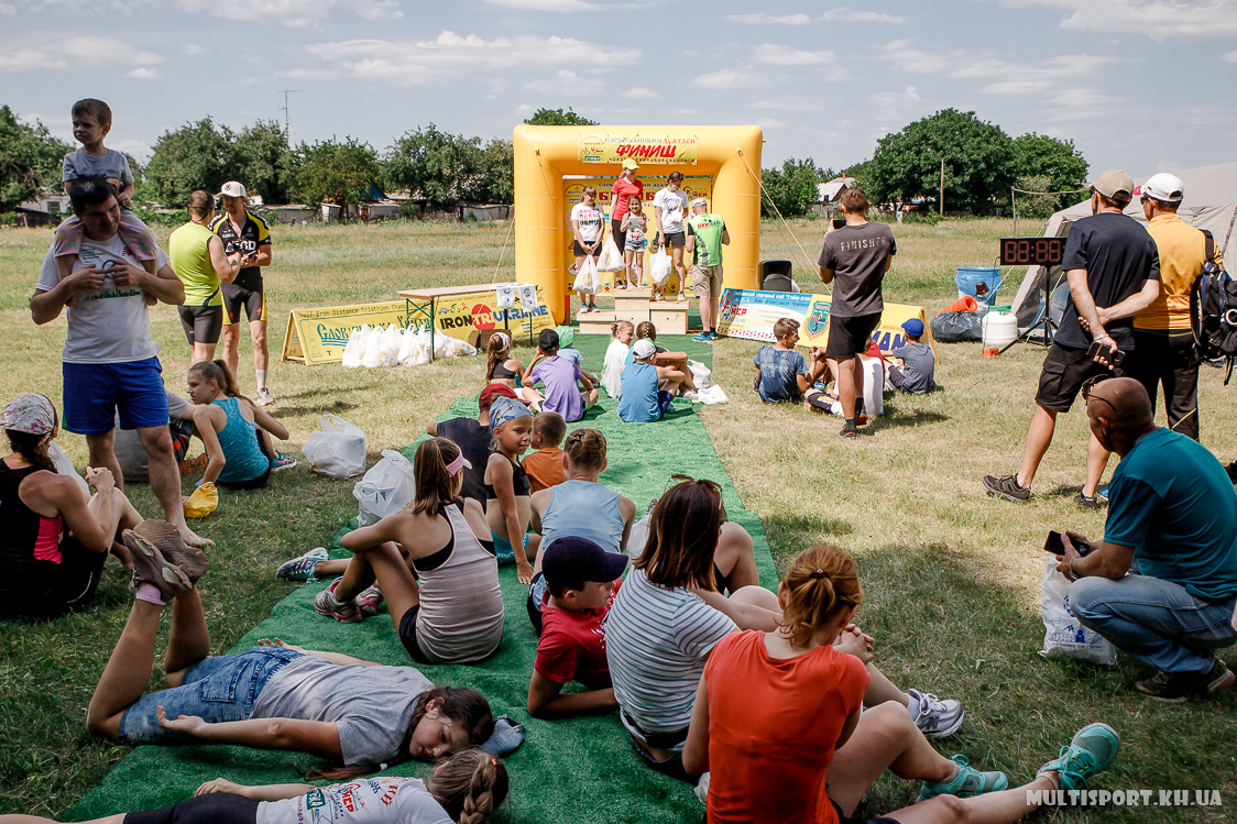 Темп и азарт велогонки был захватывающий, в пылу борьбы, забыл допить воду, которую берёг на последние метры перед велоэтапом, чтоб не задерживаться на пункте питания. В итоге получил обливания от детей и ни капли во внутрь).